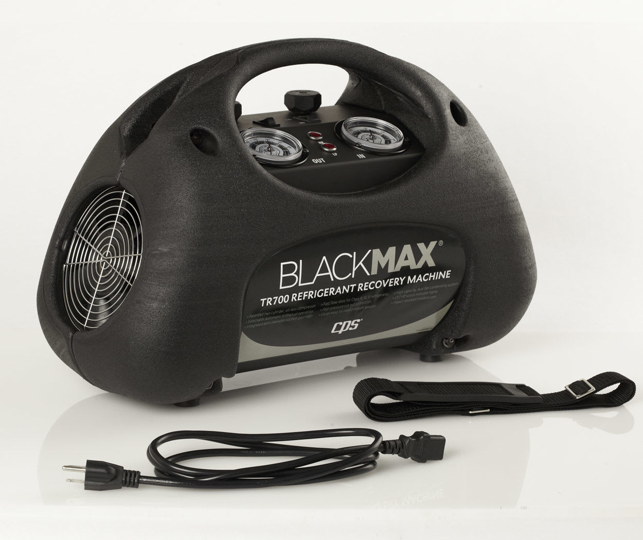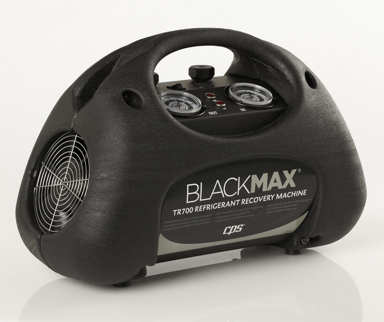 Designed for servicing residential and commercial refrigeration systems, the BLACKMAX TR700 Series is the industry’s best-looking and best-performing refrigerant recovery machine incorporating non-restrictive piston manifold valves, a powerful two-cylinder oil-less reciprocating compressor, and twin fans. The resulting residential and commercial refrigerant recovery machine provides superior airflow and condensing, which maximizes speed in both direct liquid and direct vapor recovery.